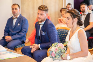 Préparatifs, mairie, église, vin d'honneur, repas & photos de couple